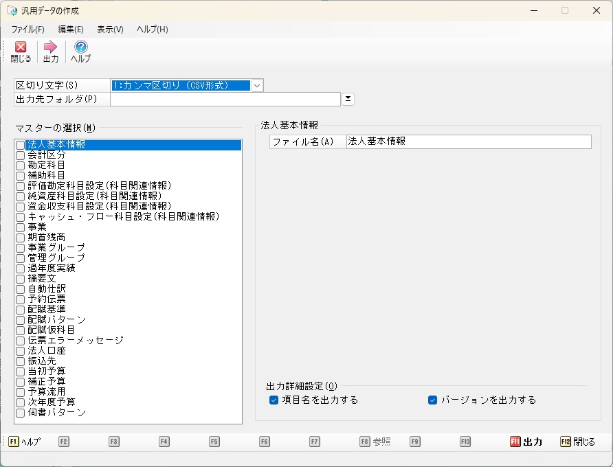 前準備で登録したマスターおよび予算データの汎用データ(テキストデータ)を作成します。