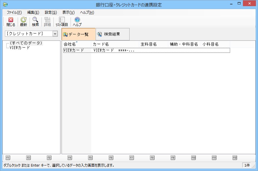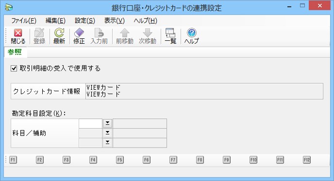 入力・参照ロックされている主科目が設定されている銀行口座、クレジットカードは表示されません。