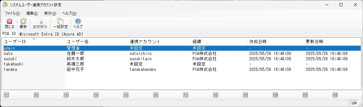 設定は全製品共通です。いずれかのPCA製品で1度設定すれば、シングルサインオンに対応したPCA製品全てに反映されます。