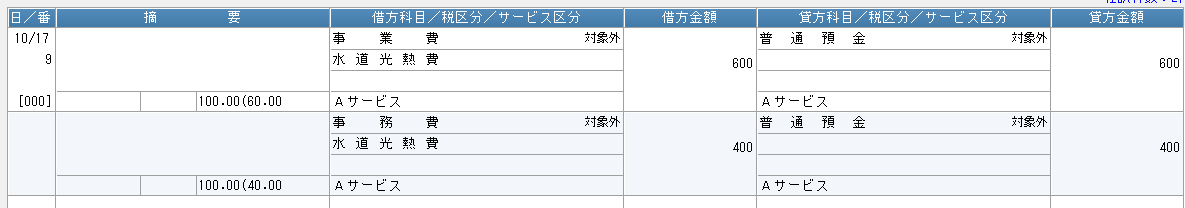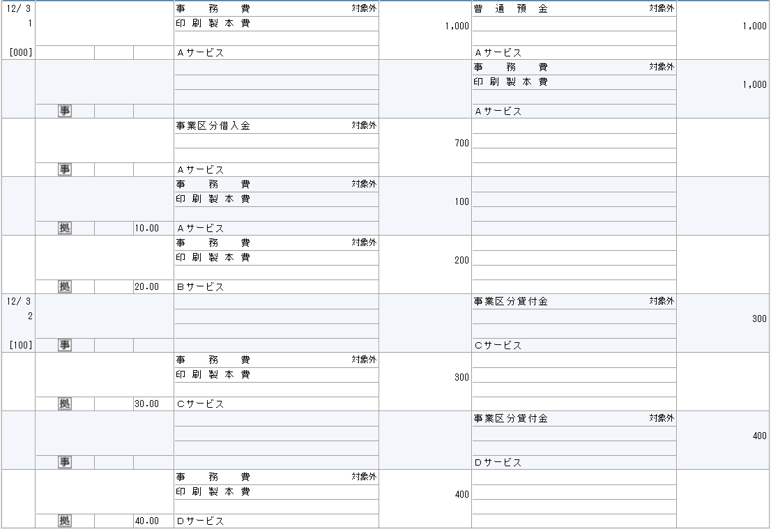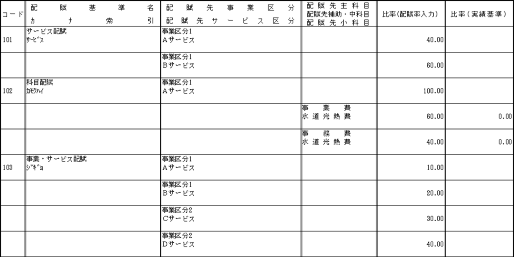 (3) 配賦基準:103の場合(仮科目:サービス間は使用しない)