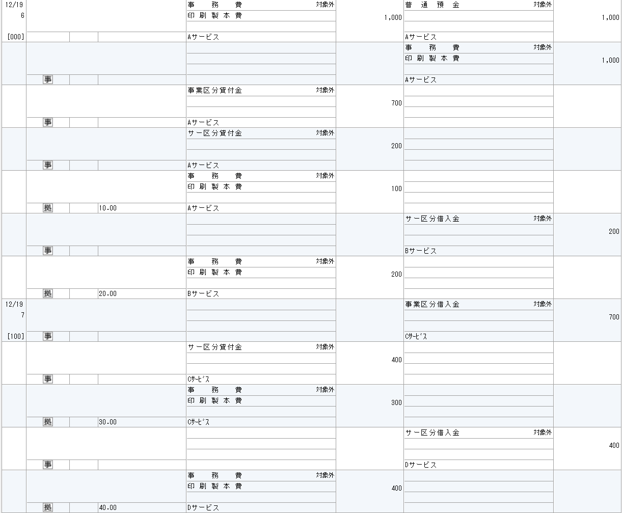 ※ 一括配賦入力は、期間指定して集計した金額を配賦する点を除けば、基本的に直接配賦入力と同じなので、ここでは説明を省略します。
