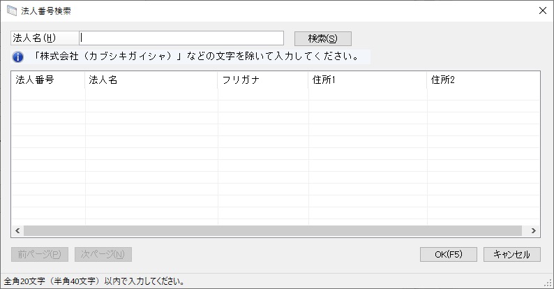 (1)  「法人名」に頭文字などを入力して[検索]ボタンをクリックすると、検索結果が表示されます。