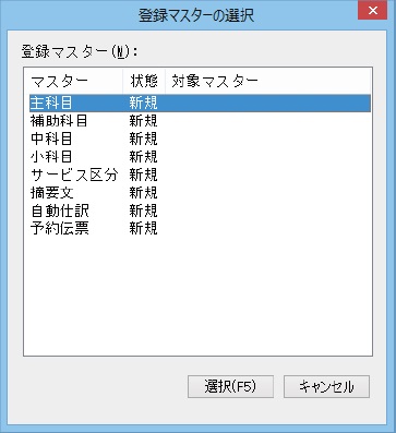 (3)  登録マスターを選択後、[選択]ボタンをクリックします。
