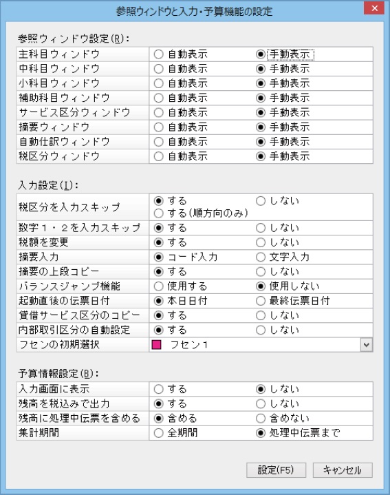 参照ウィンドウと入力・予算機能の設定を行うには