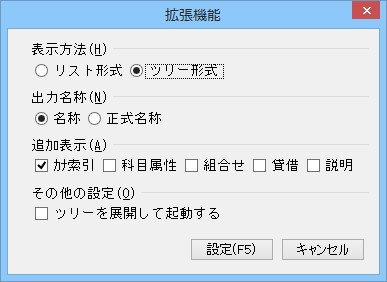 • ツリーを展開して起動する : 表示方法で「ツリー形式」を選択した場合、チェックマークを付けると、ツリーを展開した状態で起動します。