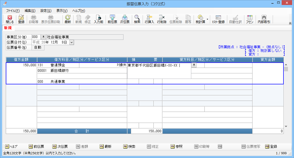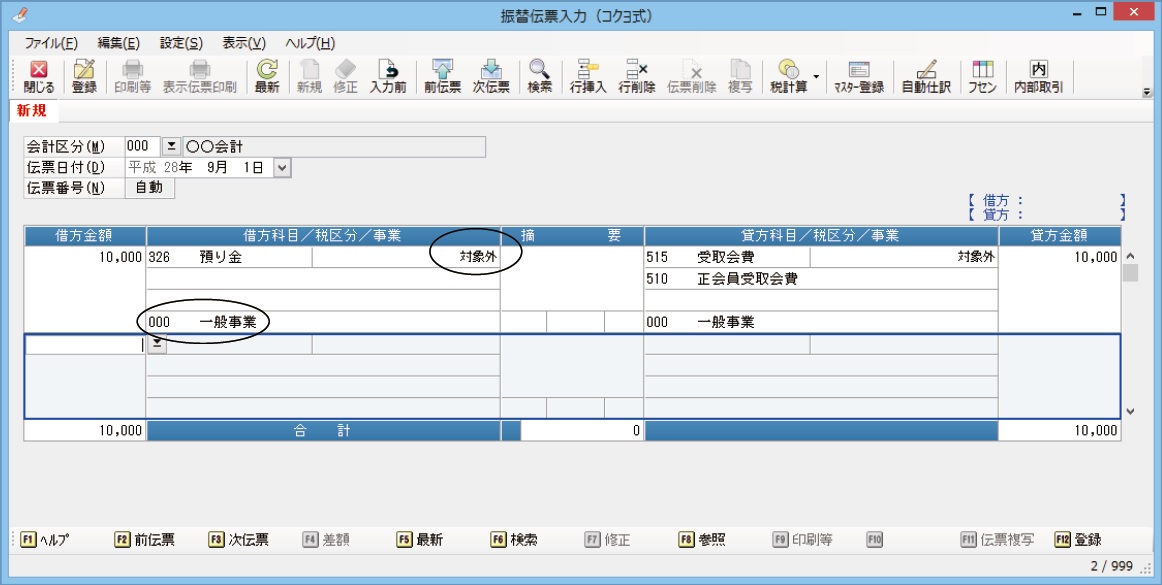 • 「振替伝票入力(コクヨ式)」「決算整理仕訳入力(コクヨ式)」「伺書入力」の借方金額欄では、[F8]キーを押すと、自動仕訳の参照ウィンドウが表示されます。