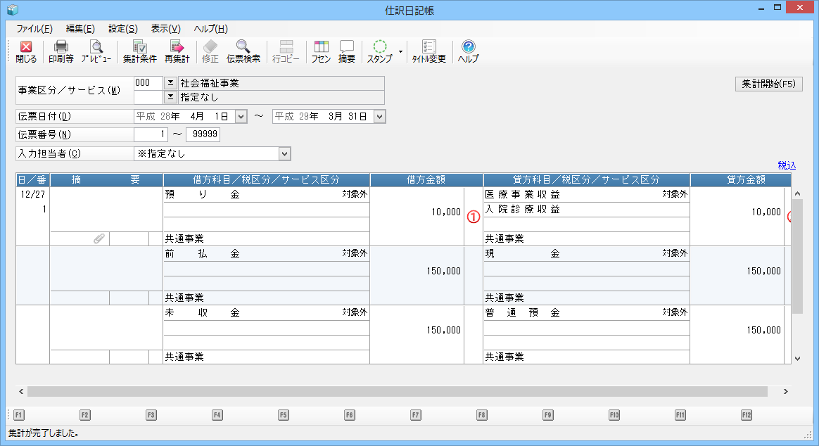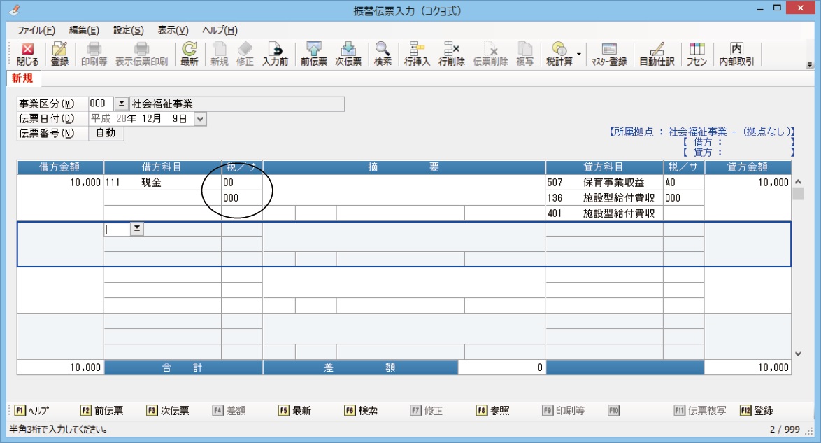データ入力、帳票出力処理では、サービス区分、税区分のマスターについて、名称を明細に表示する形式とコードのみ明細に表示する形式を任意に切り替えることができます。