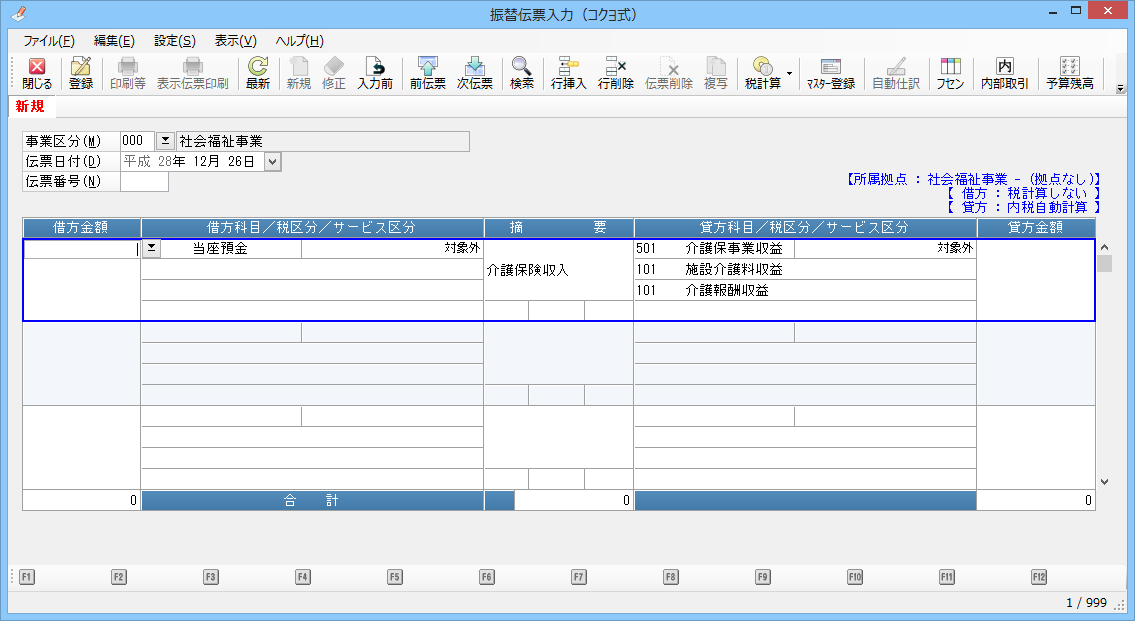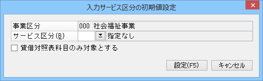 • 貸借サービス区分のコピー :サービス管理をしている場合、貸借同じサービス区分を自動入力する場合に「する」を選択します。