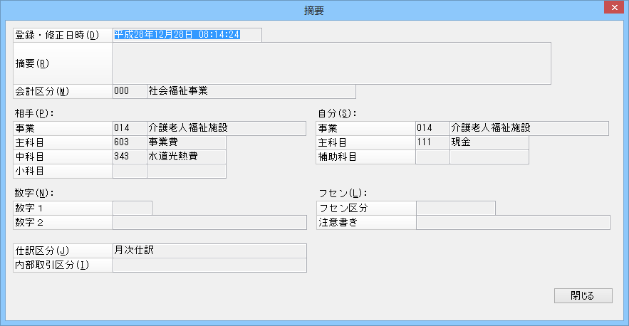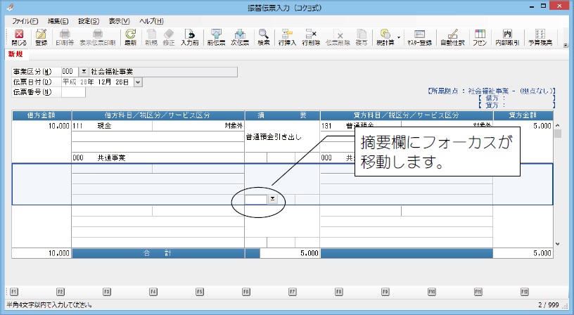 • 摘要の上段コピー : 摘要欄にフォーカスが移動する際に、上段の摘要の内容をコピーするか否かを選択します。