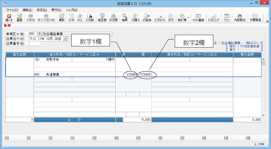 (1)  金額、消費税額欄にフォーカスがある状態で、“2”“5”を入力します。