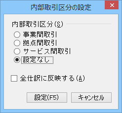 • 内部取引区分の自動設定 : 「主科目の登録」-「詳細設定」タブの「初期内部取引区分」で登録されている内部取引区分を自動設定する場合に「する」を選択します。