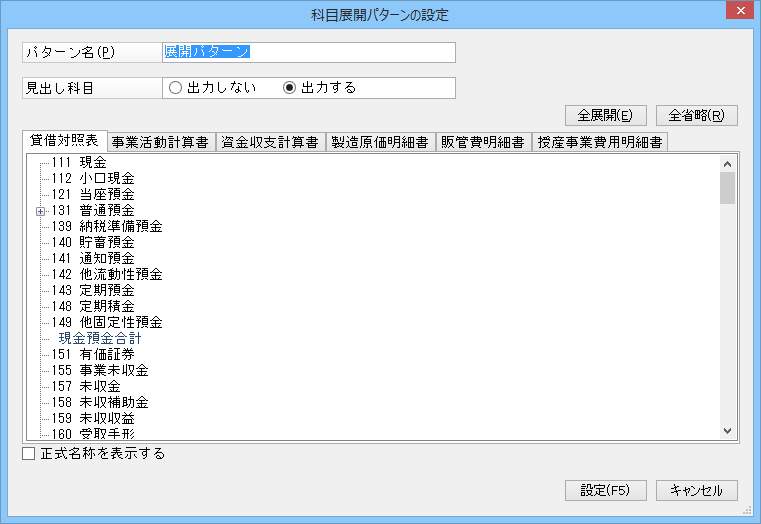 • 出力名称 : 「名称」「正式名称」から選択します。