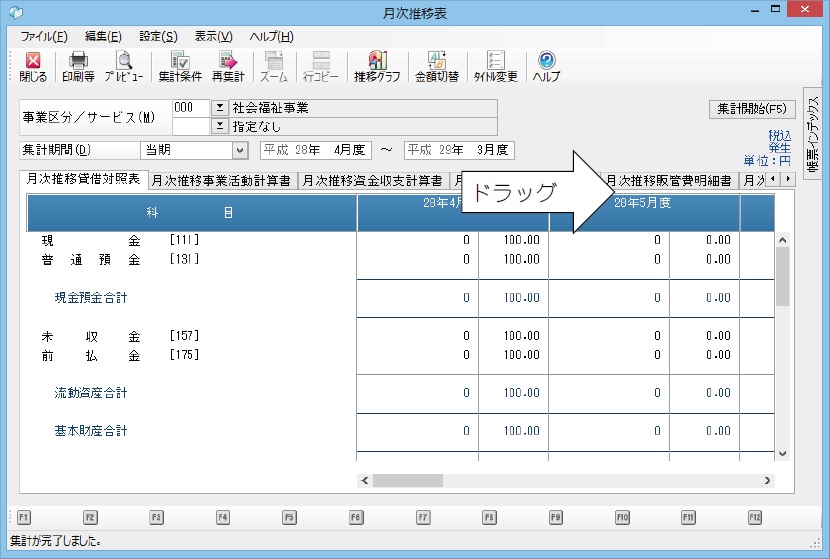 • 「分析処理」-「月次推移表」「比較財務諸表」