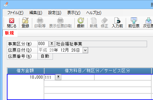 (1) 入力欄にコード(勘定科目「現金」のコード“111”など)を入力します。