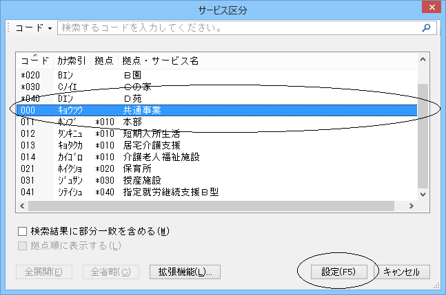 (3) 集計対象にするサービス区分を選択して、[設定]ボタンをクリックします。