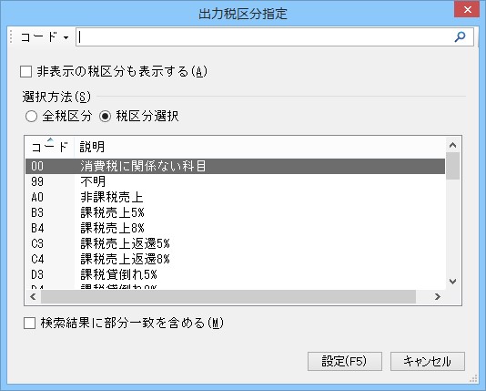 • 非表示の税区分も表示する:チェックマークを付けると、表示区分や消費税管理にかかわらず、すべての税区分を表示します。