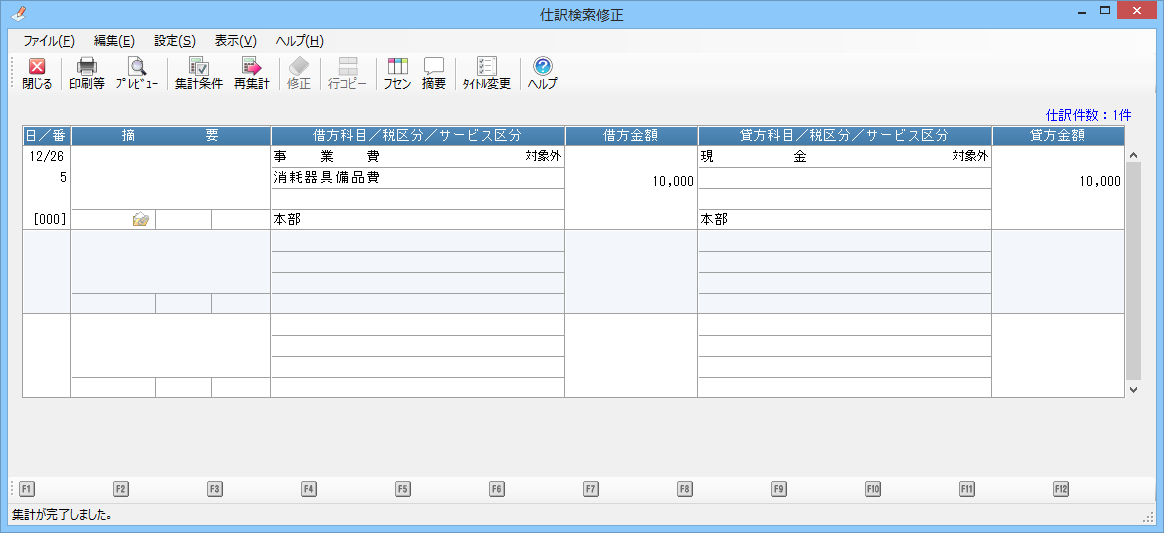 • データ入力 : 仕訳検索修正、仕訳の一括変更