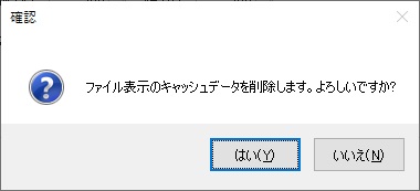 • キャッシュ情報:「すべて削除」をクリックすることで、ドキュメントファイルの表示ファイル名とサムネイル画像のキャッシュをすべて削除します。キャッシュ情報の削除を確認する画面が表示されますので、削除する場合は、[はい]ボタンをクリックします。[いいえ]ボタンをクリックすると、削除を中止します。