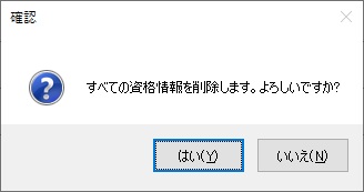 • すべて削除:全ての行の資格情報または常にキャンセルする設定を削除します。資格情報の削除を確認する画面が表示されますので、削除する場合は、[はい]ボタンをクリックします。[いいえ]ボタンをクリックすると、削除を中止します。