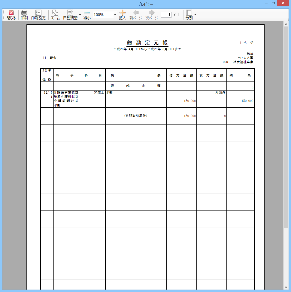 日計表を事業区分「000 社会福祉事業」、サービス区分「000 共通事業」で出力した場合、ファイル名は、“日計表(000-社会福祉事業)(000-共通事業).xls”になります。