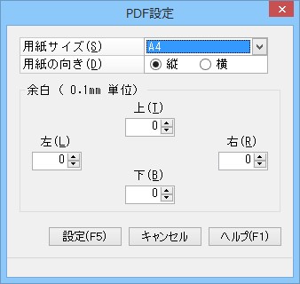 (3)  [印刷設定]ボタンをクリックすると、「PDF設定」画面が表示され、以下の項目を設定することができます。設定終了後に[設定]ボタンをクリックします。