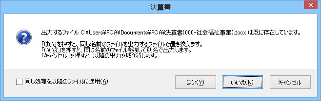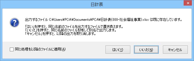 • いいえ : ファイル名にカッコ付きの数字((2)など)を付けて出力します。
