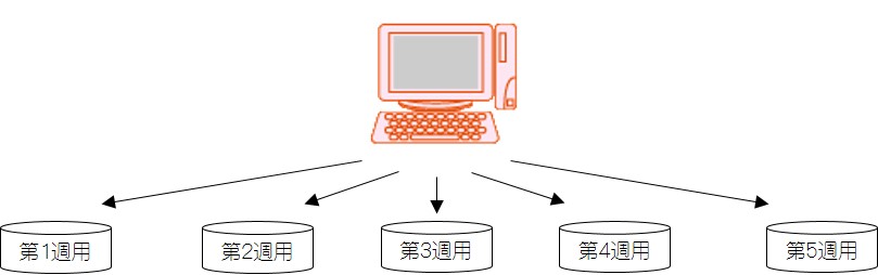 週ごとのバックアップデータ(第1週用、第2週用など)を用意し、毎週バックアップを実行する