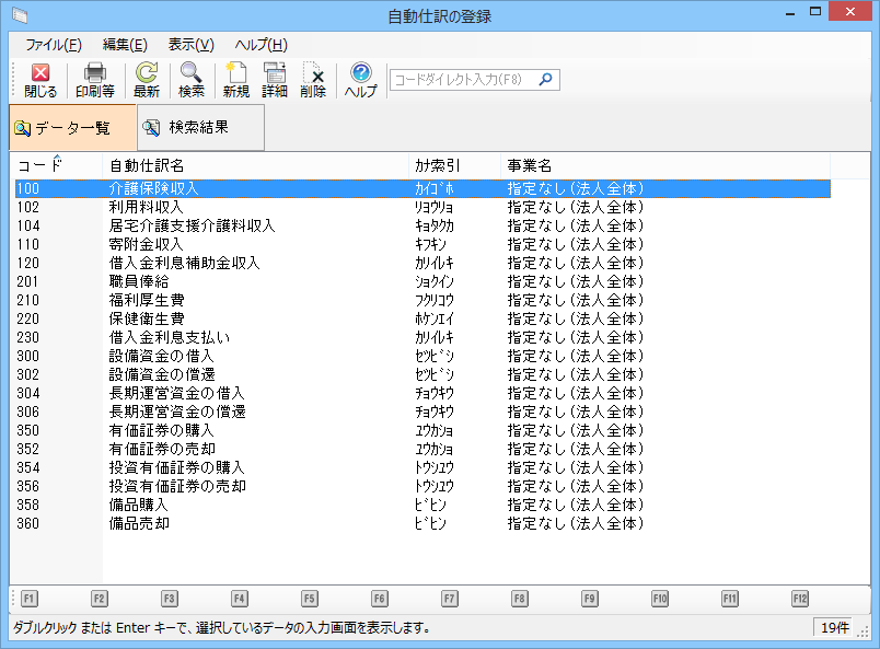 入力・参照ロック科目・事業区分/サービス区分が設定されている自動仕訳は表示されません。