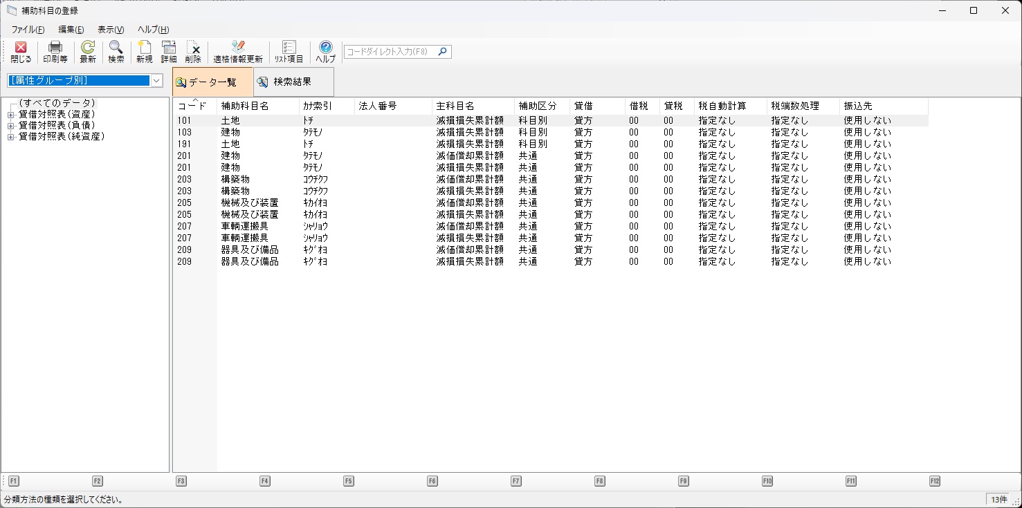 • 同じ補助コードでも補助名称が異なると、補助科目は主科目ごとの管理となります。