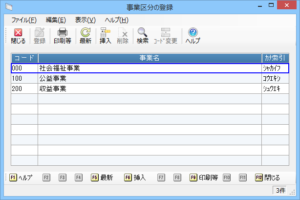 あらかじめ登録されている事業コード‘000’の変更・削除はできません。