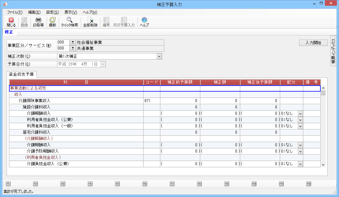 上位の科目には、下位の科目の金額が自動的に集計されます。入力可能な科目には( )が表示されています。