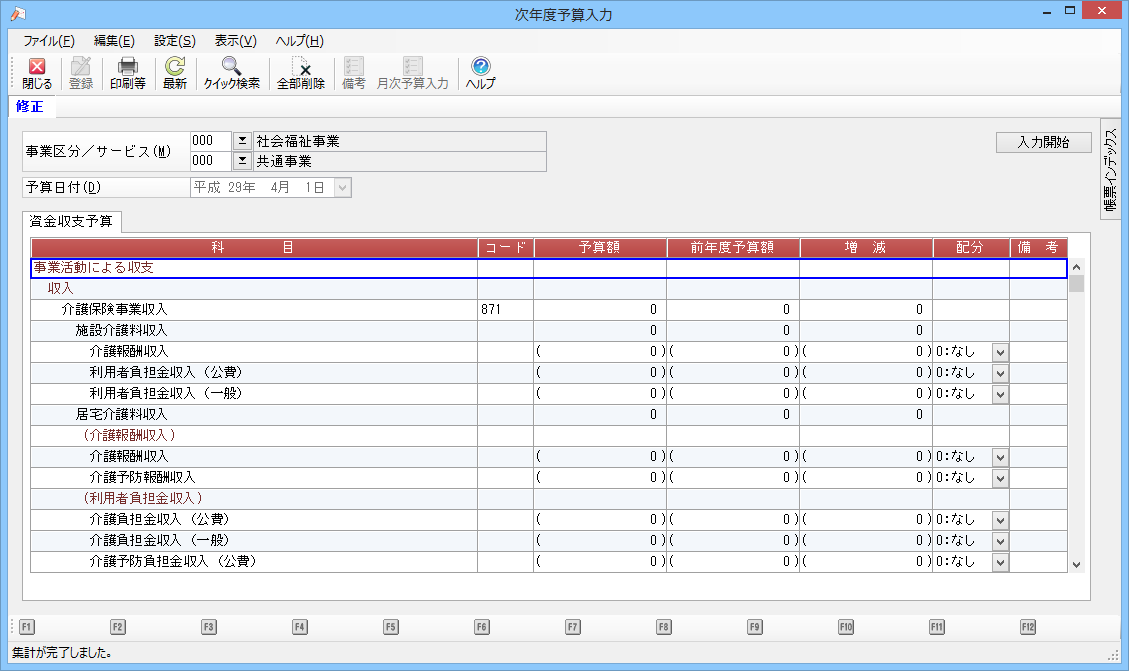 次年度予算入力における前年度予算額は、最終予算額を表示しています。