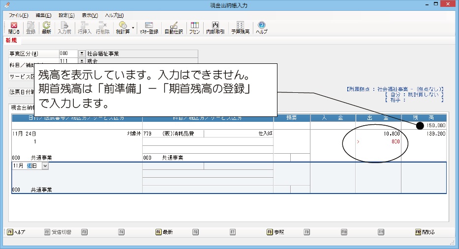 現金出納帳入力