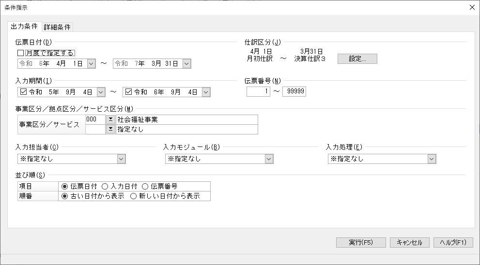 6. 資金収支仕訳の設定は、一括変更を実行すると伝票単位での再設定が行われます。