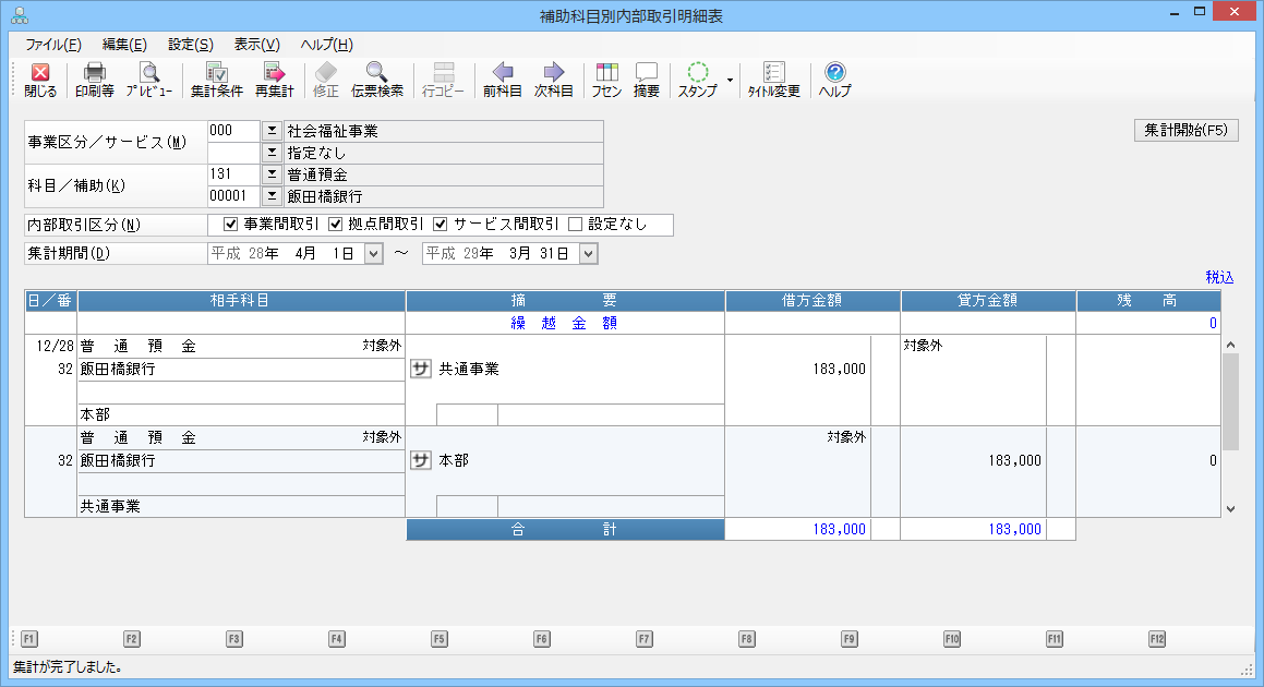 補助科目別内部取引明細表