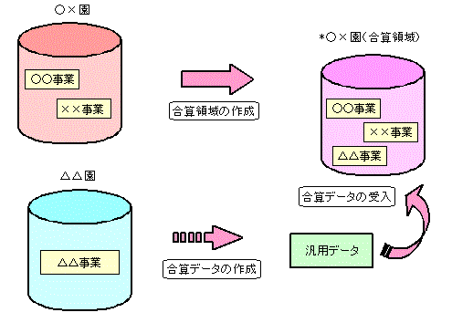 合算領域には現在処理中のデータ領域の法人基本情報、科目マスター、予算データ等を転送します。