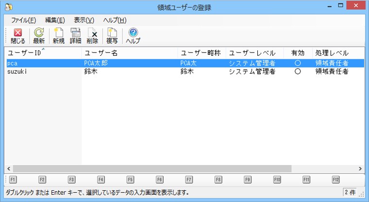 ※ 処理レベルが「領域責任者」ではない一般ユーザーがログオンした場合、本処理はメニューにも表示されません。