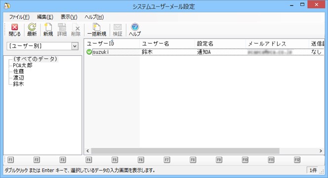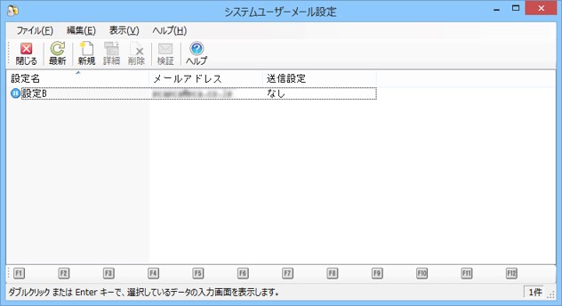 メニューの「セキュリティ」-「システムユーザーメール設定」を選択すると、以下のような画面が表示されます。