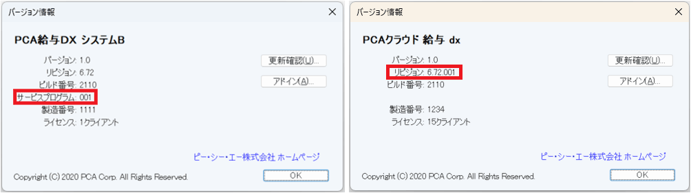 - セットアップ終了後、『PCAソフト』を起動して、メニューの「ヘルプ」―「バージョン情報」をご確認ください。以下のような画面が表示されていれば、個別対応プログラムのインストールは完了しています。