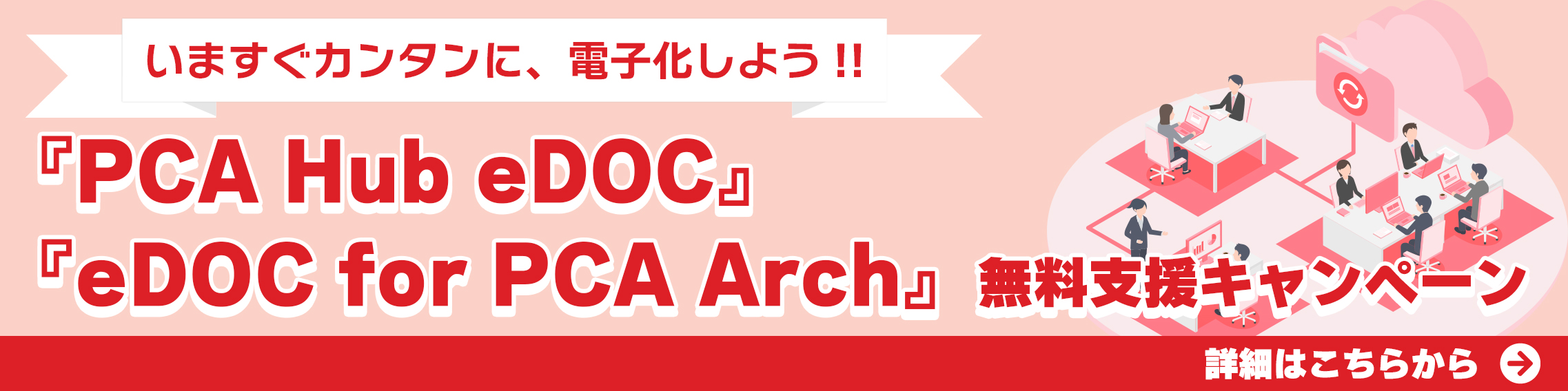 - PCA ID : PCAが提供するサービスをより便利に利用していただけるようにするための “共通ID” です。PCA Hub サービスを始めとして、PCAクラウドやPCAサブスク、サポートサービスを安全かつ一元的に利用でき、管理負担の軽減や最適なサポート・機能改善に役立ちます。