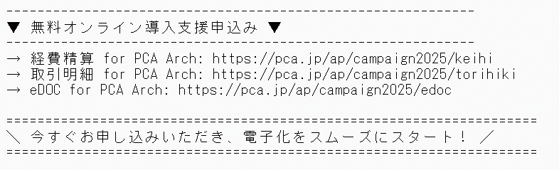 本キャンペーンの特典2への申込みは『PCA Hub 経費精算』または『経費精算 for PCA Arch』の本契約後、下記リンクよりお申し込みください。