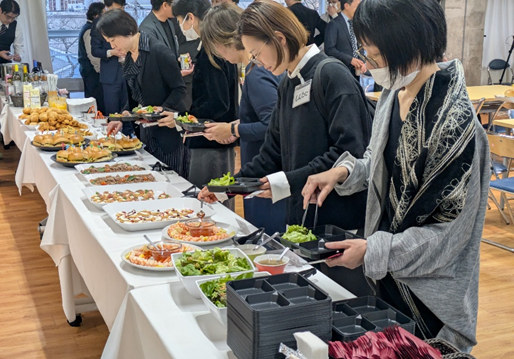 グループワークを終えた後は懇親会です。今回は学校にちなんで、懐かしの給食メニューを楽しみました。揚げパンやミルメークなど、「懐かしい!」という声があちこちで聞こえてきました。