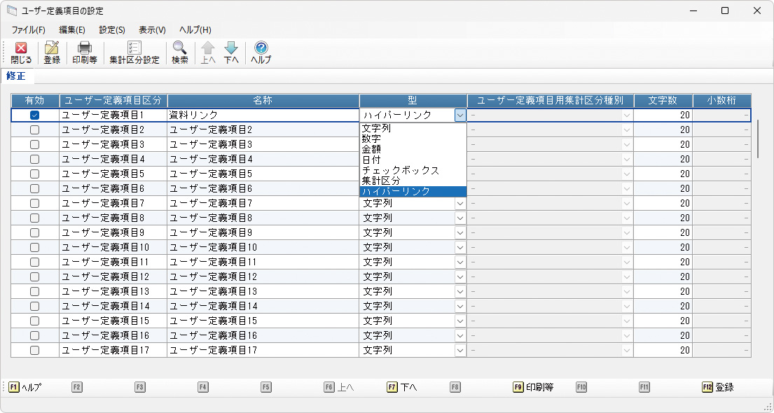 資産マスターの独自の資産項目を100個まで自由に設定することができます。帳票で確認したり、通知の条件としても利用できますので、様々な用途に利用できます。